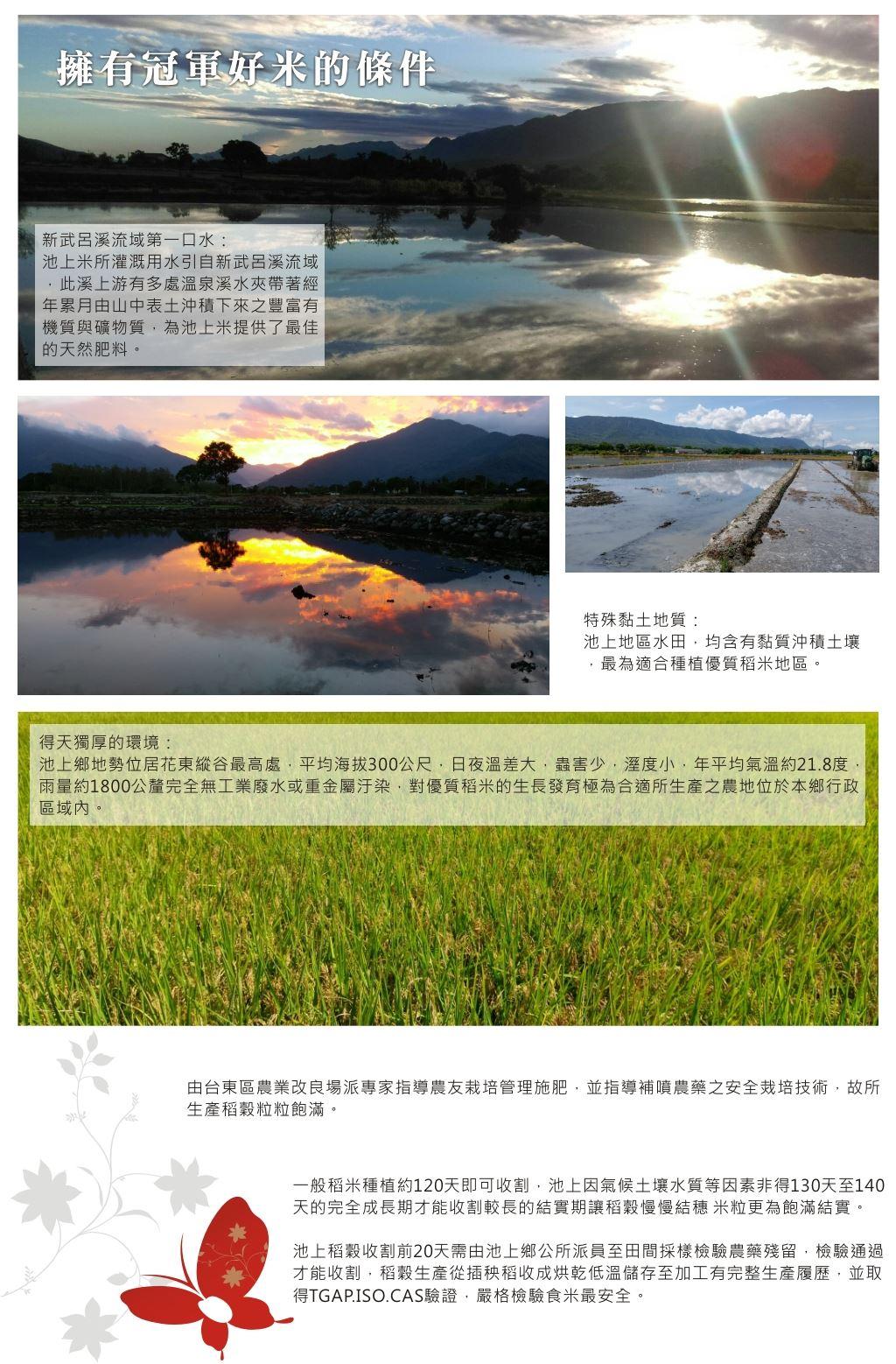 品質保證:每一包經過池上鄉公所認證的池上米皆符合CNS國家稻米標準及食味值規範(65分以上),所以保證每一包通過認證的池上米都有優良品質。